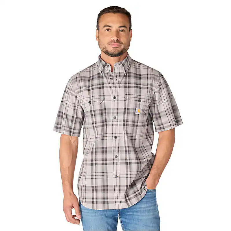 Home Carhartt Fort Loose Short Sleeve Plaid Shirt (Carhartt Grey) Size XXL