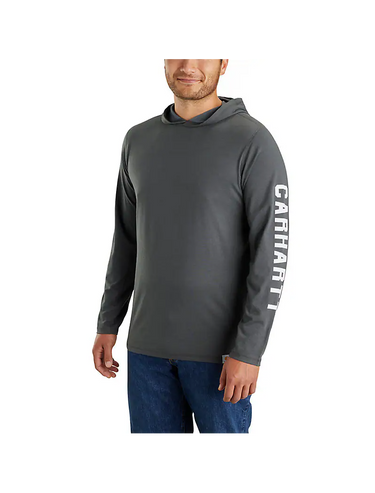 Carhartt Force® Relaxed Fit Long-Sleeve Logo Graphic Hooded T-Shirt (Carbon Heather) Size XXLT