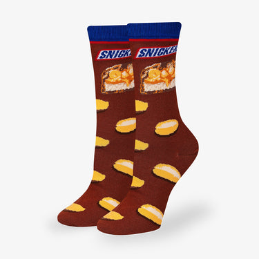 Satisfy your sock cravings with the Snickers Hungry Brown Men's Crew Socks by Cool Socks! These chocolate-brown socks feature the iconic Snickers branding and the memorable slogan "You're Not You When You're Hungry." Adorned with playful peanut designs, these socks perfectly tribute the deliciously satisfying candy bar. Made from soft, high-quality materials, they offer a comfortable fit while showing off your love for Snickers. Whether you're lounging at home or on the go, these socks keep your feet cozy and stylish. Perfect for candy lovers and anyone who believes a Snickers bar is the best cure for hunger!