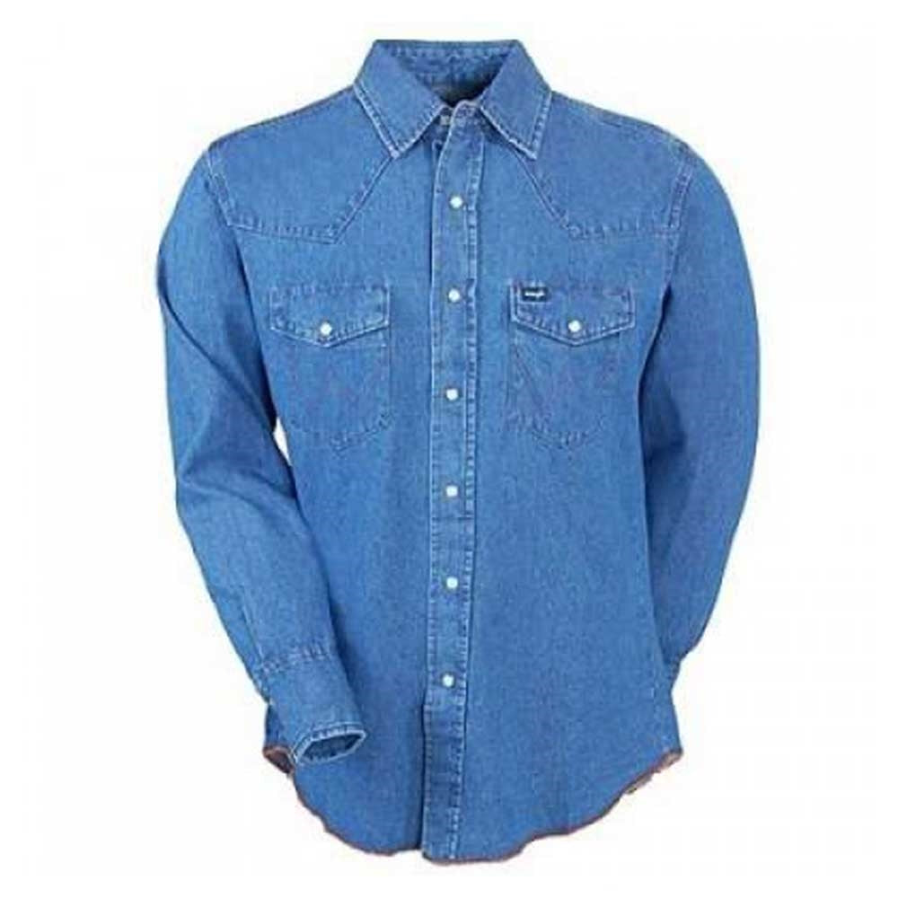 One wardrobe staple a cowboy should never be without is a work shirt that can hold its own. That's precisely why our Cowboy Cut® work shirt is designed with hard work in mind, so you can get any job done with total confidence. Every Cowboy Cut® work Western denim snap shirt comes with all the authentic details you'd expect from a tried-and-true Wrangler® essential, including Western front and back yokes, a spread collar, two spade flap snap pockets, the Wrangler® logo riser label on the left pocket, and our decorative 'W' stitching. Just like the jeans in our Cowboy Cut® collection, the Cowboy Cut® Western snap denim work shirt will keep you dressed and ready for anything.