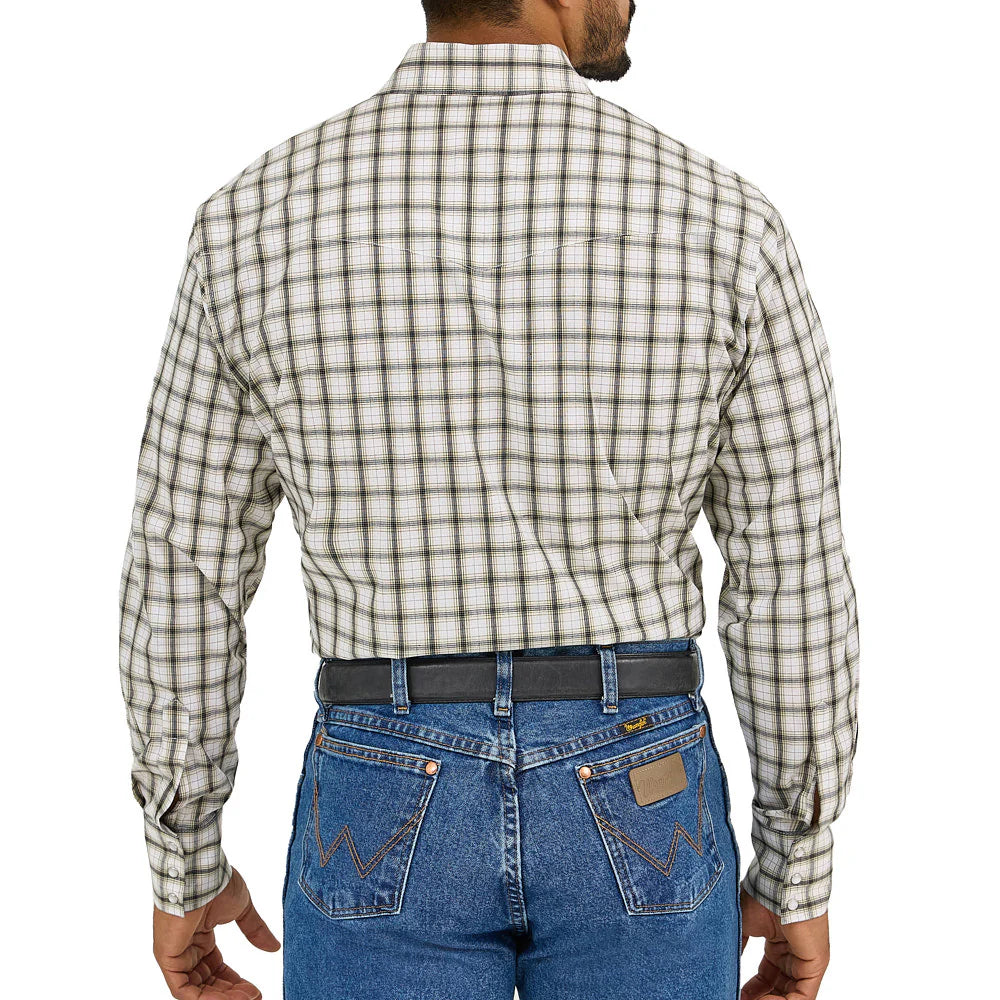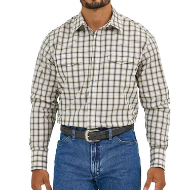Wrangler Men's Wrinkle Resist Snap Front Shirt (Khaki/Black) Size L