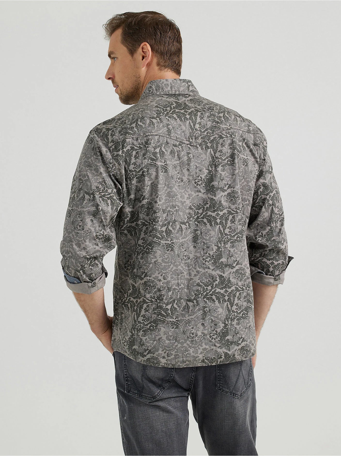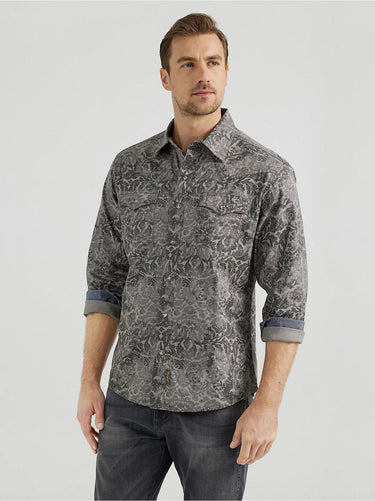 Wrangler® Retro® Premium Western Snap Printed Shirt (Grey) Size XL