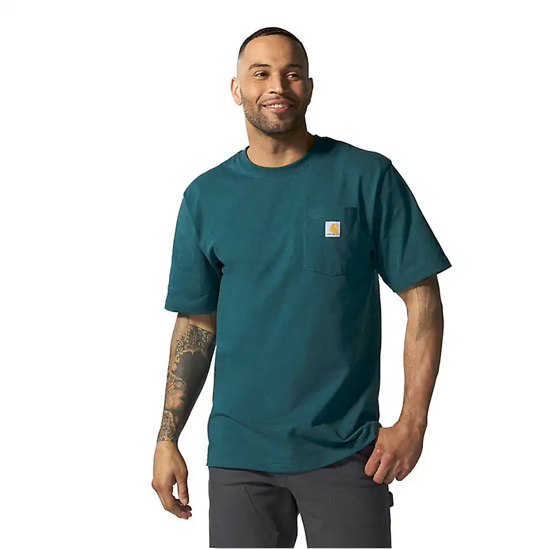 Our pocket t-shirt debuted in 1992, and its rugged cotton design and clean looks made it a fast favorite among the hard-working folks who pulled it on. Though decades and trends have come and gone, there's a reason the K87 remains a classic. This men's t-shirt is made with heavyweight cotton built to handle tough days on the job. It has an loose fit that gives you room to move and a soft feel that only gets better with time.