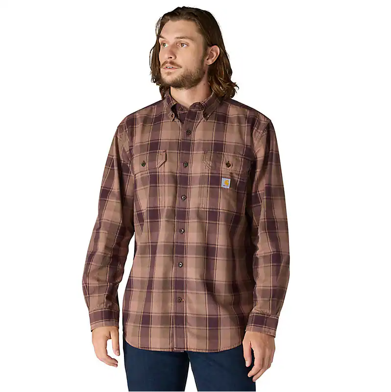 Home Carhartt Loose Fit Midweight Chambray Long-Sleeve Plaid Shirt (Sepia) Size XLT
