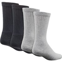 Men's crew socks. Reciprocated heel and toe. Provides all day comfort and durability. 85% cotton, 15% nylon. Great value. Lifetime guarantee.