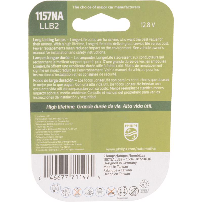 Philips LongerLife Incandescent Parking/Side Marker/Turn Miniature Automotive Bulb 1157NALLB2