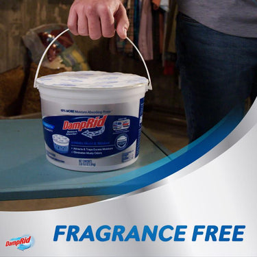 DampRid Hi-Capacity Moisture Absorber Buckets eliminate excess moisture from the air that can cause stale, musty odors. With the power of Microban technology, it also inhibits the growth of mold and mildew*. The hi-capacity design is perfect for large spaces - making it an ideal garage and basement odor eliminator. It's also great for crawl spaces, storage areas and stored RVs & boats. DampRid crystals absorb excess moisture to create and maintain the optimal humidity level wherever moisture is a problem. This dehumidifying bucket offers 10% more moisture absorbing power**, creating long-lasting freshness. Duration depends on temperature and humidity. When the liquid in the bucket reaches the replacement indicator line, simply discard and replace. Keep out of reach of children. Do not use in moving vehicles. Do not allow product to contact leather or metal. (*Inhibits surface damaging mold and mildew growth, **Compared to other DampRid Hi-Capacity Bucket).