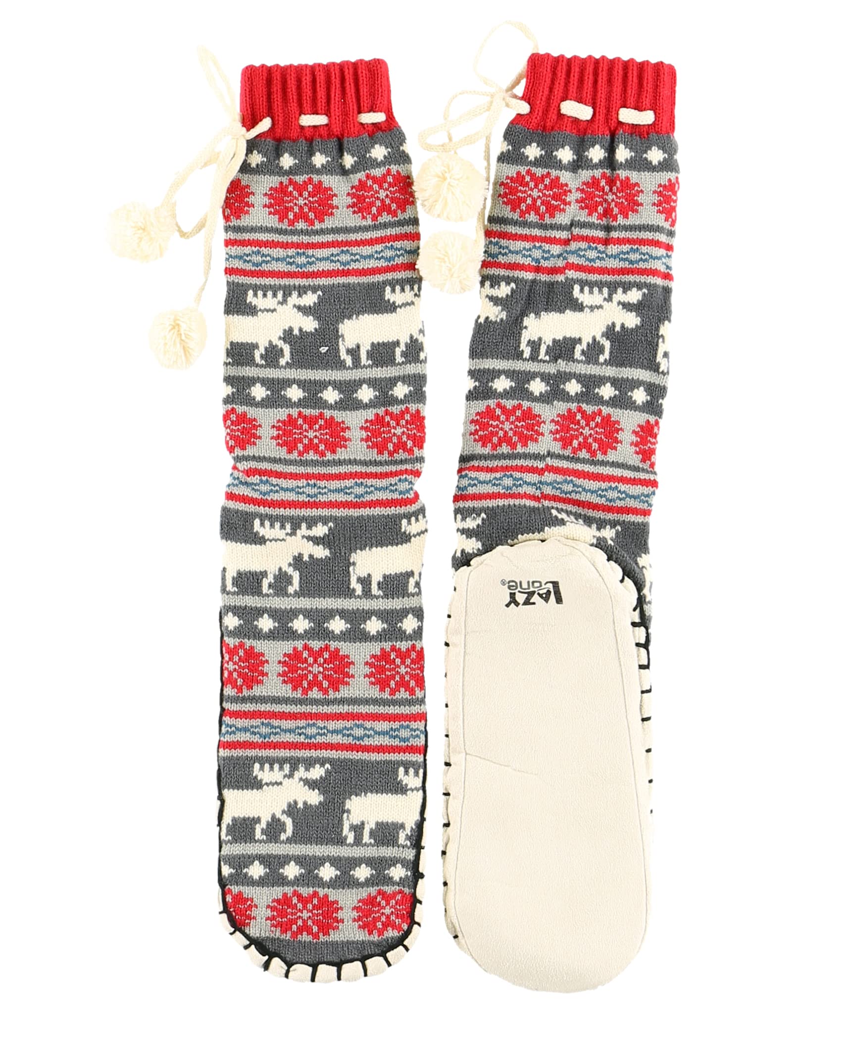 Lazy One Knitted Slipper Socks (Moose Fair Isle) Size L/XL