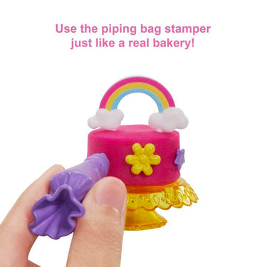 Explore the experience of running a bakery with the Barbie® Bakery Playset! Kids love baked treats and with this playset they can run a bakery and make yummy cakes and other treats! Playset includes Barbie® bakery petite doll (12 inches) with cool pink hair dressed in a cute striped dress with smock. The bakery station has three play areas to bake, decorate and display plus comes with 20+ accessories for storytelling fun. Kids can use two kinds of dough (pink or blue) and put it in the oven, pull the lever and watch the cakes rise for cake-making fun! They can then decorate the cake on the pedestal and use cake decorating accessories and toppers to design the cake exterior. Playset includes bakery station, Barbie® 12 inch doll, 2 dough containers, piping bag stamper, spatula, decorations, toppers, cupcake tin, cookie plate and more. Barbie® doll can hold some of the accessories for even more realistic play fun. Doll cannot stand alone. Colors and decorations may vary. Makes a great gift for ages 3 years old and up.