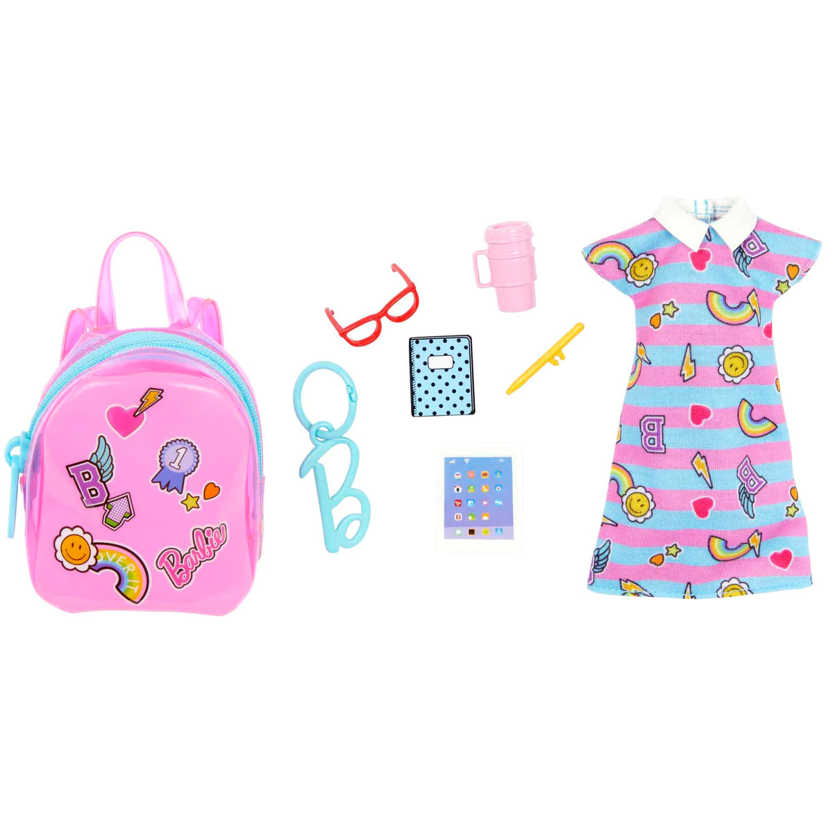 What's even better than a new outfit and accessories? A bag to store it all in! These Barbie accessory packs include a beautiful, eye-catching bag that comes with a fashion and five themed storytelling pieces. Once Barbie doll dresses in her new look, she can carry all her essentials in her bag and head out for a fun day of adventure! Universal fit designed to fit most Barbie dolls. Dolls and fashion packs each sold separately, subject to availability. Colours and decorations may vary.