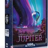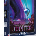 A spectacular light show of purple, blue and pink fill Jupiter's sky. This glowing ring of light will impress any future space traveler. NASA Space Travel Poster