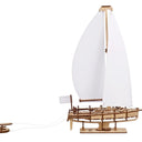 Catch the wind, feel the salt breeze, take to the seas or go island hopping in the stunning Ocean Beauty Yacht by Ugears. This DIY wooden model sailing vessel is a beautiful static model with two gleaming white paper sails and comes with its own sturdy stand for display on your shelf, mantle, or desk. The model is somewhat different from other Ugears mechanical models in that the Yacht doesn't have gears and isn't propelled by a spring or rubber band motor—it's rather meant as a handsome display piece for your home or office decor.