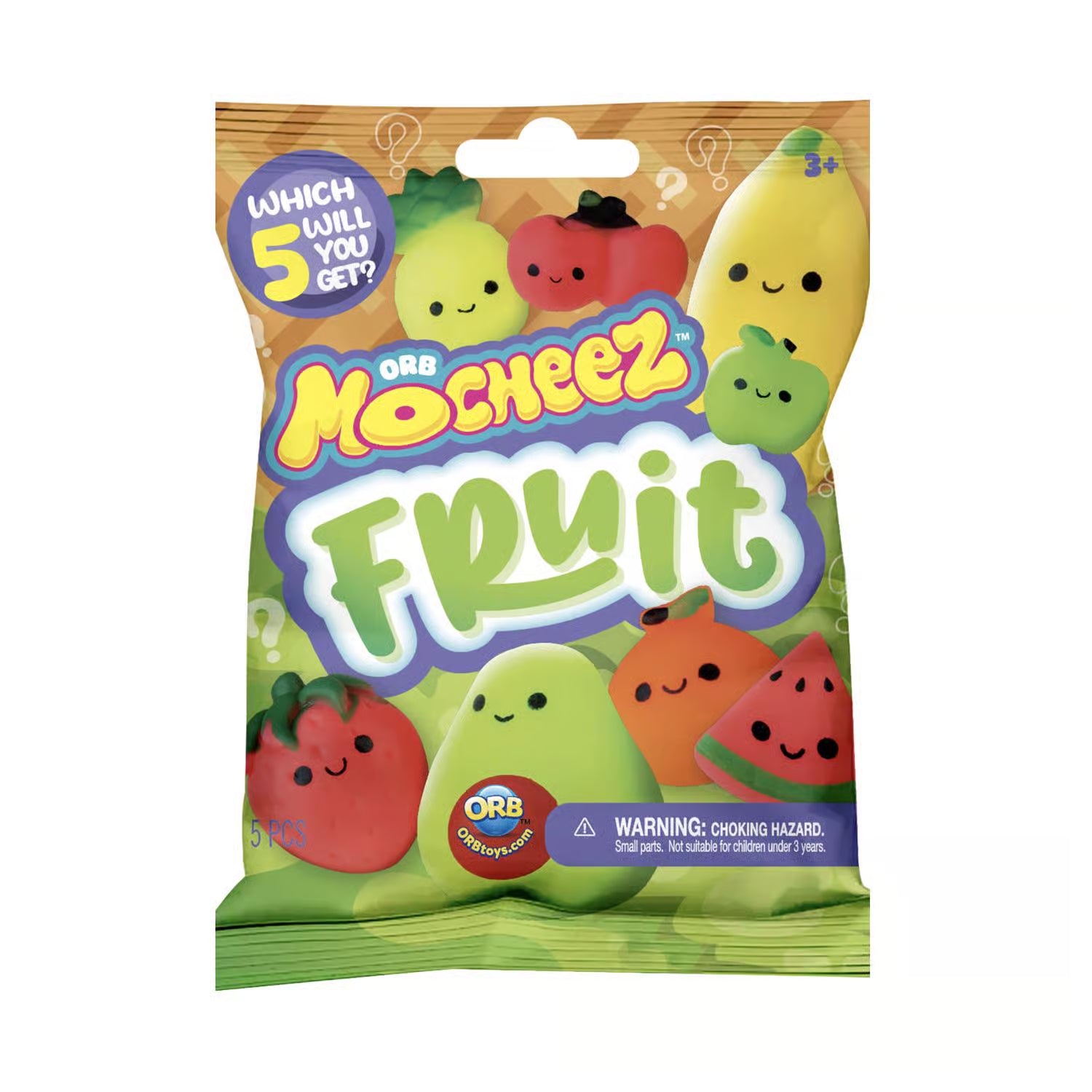 Check out the latest in blind bag fun. ORB Mocheez Fruit Blind Bags include 5 surprise fruit shaped mocheez that squish, smoosh, jiggle and wiggle. Each blind bag contains 5 wiggli, jiggli collectible fruit themed figures. Which ones will you get. collect them, trade them, share them.