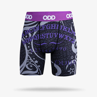 Channel your mysterious side with the Ouija Men's Boxer Briefs. Featuring a design inspired by the classic Ouija board, these boxer briefs are perfect for those who love a touch of the supernatural. The black and gray background is accented by the Ouija board's signature alphabet, numbers, and swirling mystical patterns in striking purple, giving these briefs an eerie yet stylish vibe. Crafted from soft, breathable fabric, these boxer briefs offer all-day comfort and flexibility. The purple ODD-branded waistband provides a secure and comfortable fit, adding an extra pop of color to the haunting design. Whether you're summoning spirits or just lounging, the Ouija Men's Boxer Briefs will keep you cool, comfortable, and ready for anything. Dare to add some spooky flair to your underwear collection with these unique boxer briefs.