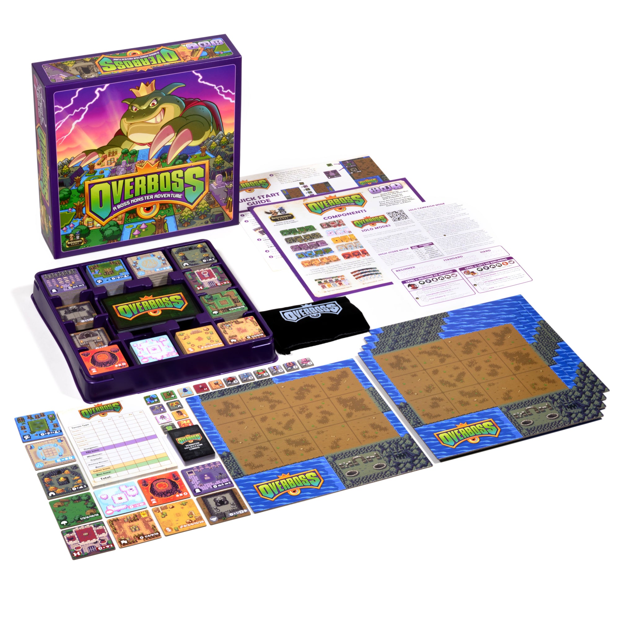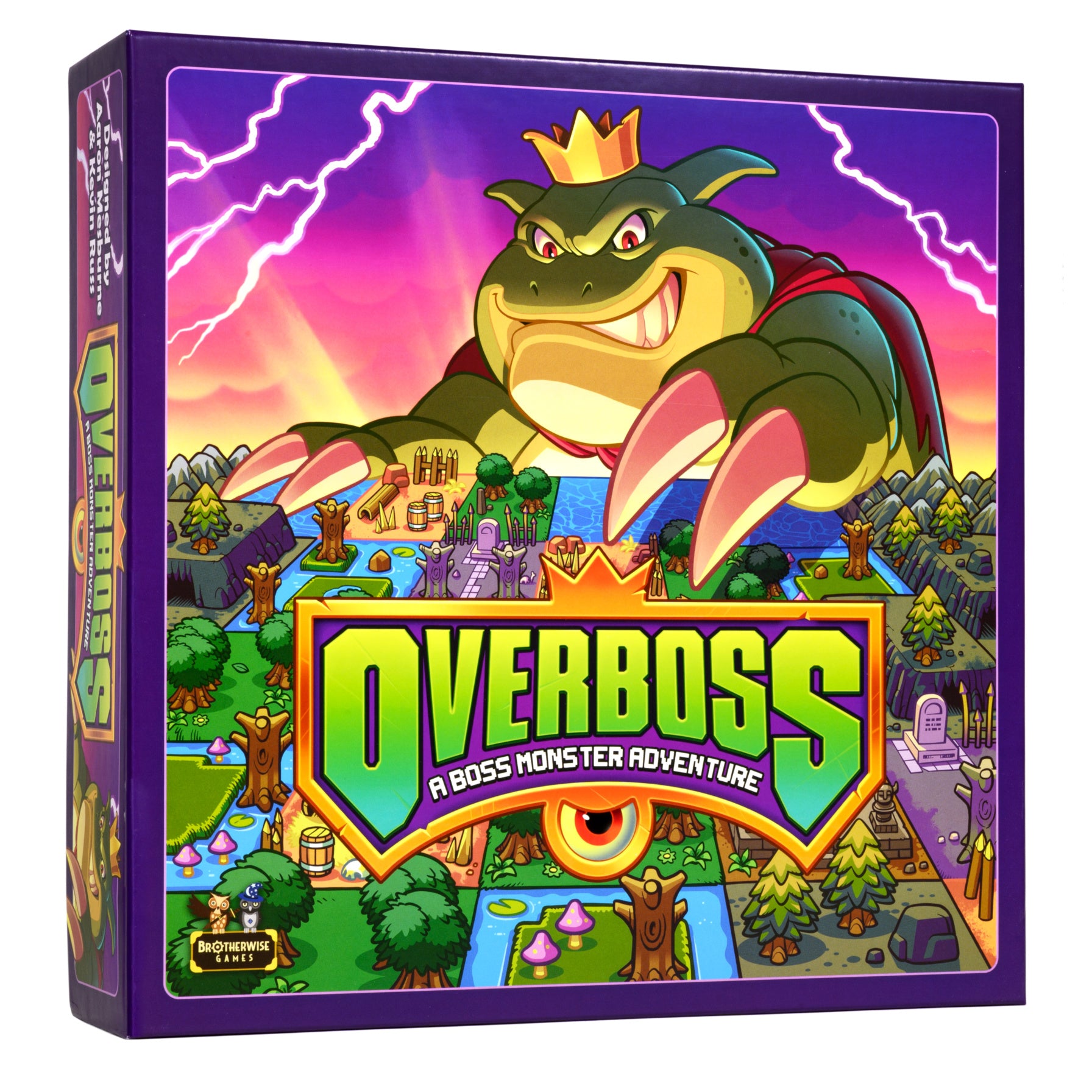Overboss is an all-new game featuring the retro villains of Boss Monster! Emerge from your dungeon to conquer the overworld in this game of tile drafting, map building, and set collection. Up to five players compete to build the map with the greatest Power. You can fill your world with spreading swamps, spooky graveyards, dense forests, dark caves, and orc encampments.