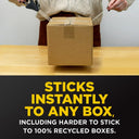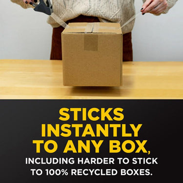 - This tape can be used to seal any type of box, including harder-to-stick to 100% recycled boxes