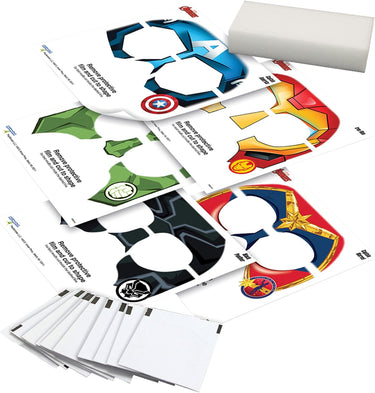 - MULTIPLE TEMPORARY FACE DESIGNS: It’s a fun and easy way for kids to transform into an Avenger! Includes designs for Captain America, Iron Man, Hulk, Black Panther, and Captain Marvel.