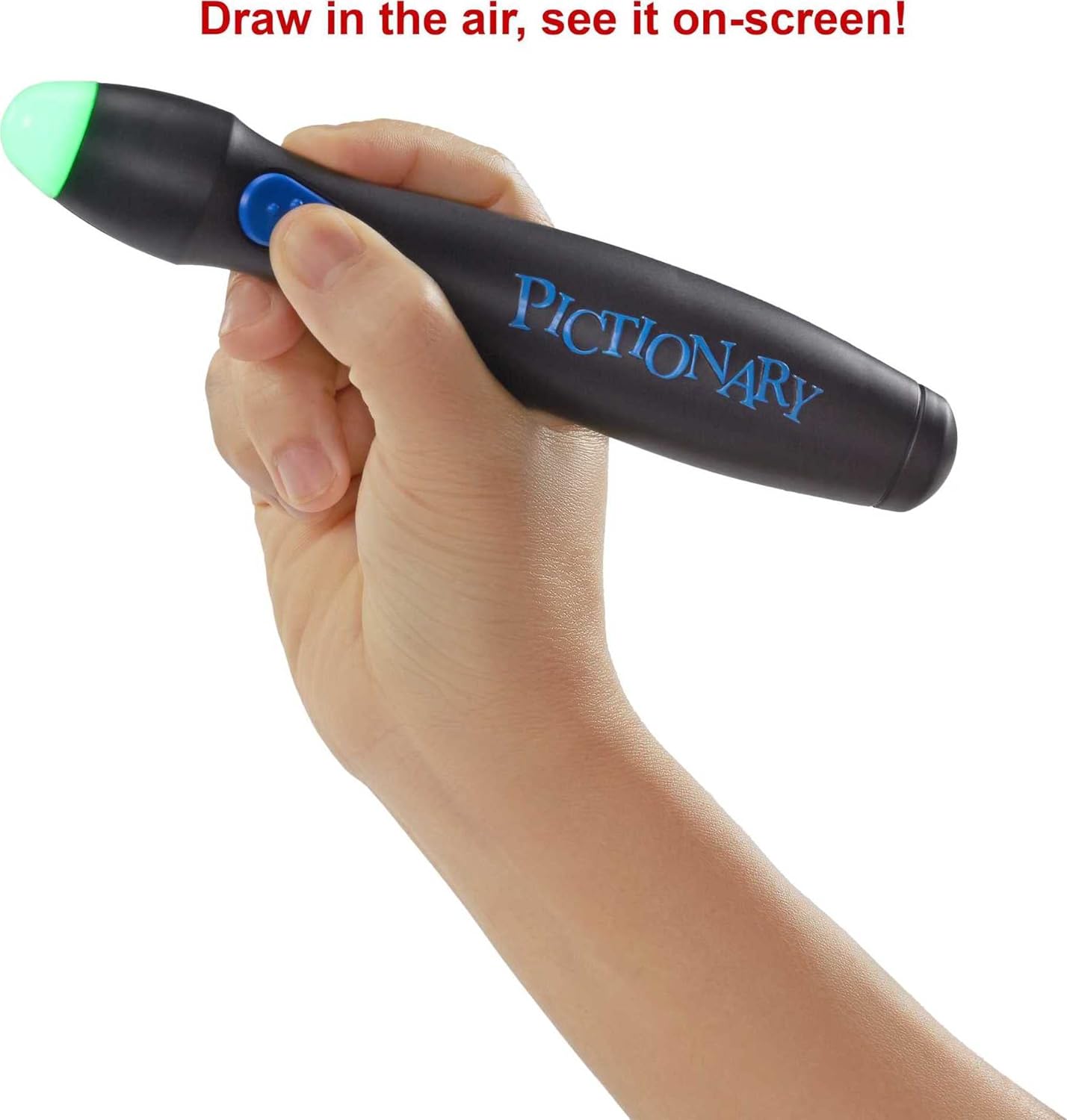 Pictionary Air is a hysterical way to play the classic family drawing game! Now, with Pictionary Air Kids vs. Grown-Ups, kids will find it easier to draw in the air and see it on screen. Adults use the updated classic clues while kids have clues that include illustrations, making it easier for children as young as 6 years old to join in the fun! Interact with the drawings, as in charades, to make this even more of an exciting twist on the quick-draw classic. Download the Pictionary Air app to a smart phone or tablet to get started. Point the in-app camera at the illustrator and they'll appear, along with the sketch, on the screen of the smart device. Kids have the option to use and in-app 'selfie mode' to see their drawings. For even bigger laughs, players can cast their drawings from their smart device to their TV using Apple TV, Chromecast or a similar streaming device. Compatible streaming device required. Please check the Pictionary Airsupport page online for device compatibility. This family game brings big fun to any game night or party. Colors and decorations may vary.