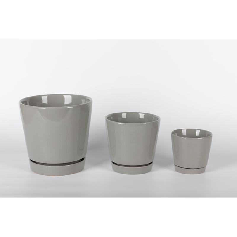 Border Concepts' Small Indoor Ceramic Pots are developed for consumers with highest regard for design trend, function and quality. The Flair Saucerpot features a simple modern design in multiple sizes and colors. Mix and Match the Flare pot family throughout your home for a look that is traditional and timeless. Fill this beautiful grey planter with houseplants, herbs and succulents to enhance your home or office décor. The drainage hole ensures proper watering and the attached saucer collects excess water to protect indoor surfaces.