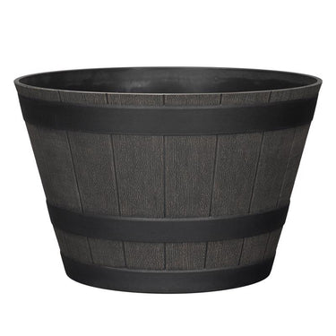 L&G 9 in. H X 14 in. W X 14 in. D X 14 in. D Polyresin Whiskey Barrel Planter Brown