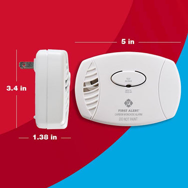 The First Alert CO605 Carbon Monoxide Plug-In Alarm features an electrochemical CO sensor to alert you to dangerous carbon monoxide. This personal carbon monoxide detector plugs into any standard electrical socket to monitor CO levels in your home, office or other space. The simple, user-friendly design features battery backup to allow for continuous monitoring, even in the event of a power outage. Dual Power Provides Continuous Monitoring: The carbon monoxide detector can be placed almost anywhere; all it requires is a standard electrical outlet. In the event of a power failure, backup batteries power the CO detector so it can continue monitoring your space for dangerous levels of carbon monoxide. Electrochemical CO Sensor: The First Alert Carbon Monoxide Plug-In Alarm uses an electrochemical sensor to alert you to elevated carbon monoxide levels. Designed to alert the soundest of sleepers, a loud 85-decibel alarm warns you when carbon monoxide is detected. Simple and Easy to Use: The carbon monoxide monitor is easy to set up: simply plug it into a standard electrical outlet to monitor your space for carbon monoxide. There are no complicated displays or settings to navigate; a single button silences the alarm and tests the CO detector. Where To Place Carbon Monoxide Alarms: One on every level of the home and one in each sleeping area.