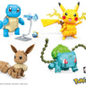 Build Bulbasaur, Charmander and Pikachu in medium scale. Each poseable Pokémon stands over 4-inches tall and features an authentic appearance including battle effect details. Build them all and take your training to new heights. Each sold separately. Characters, themes, and details may vary. Ideal for Wonder Builders, ages 7 and up