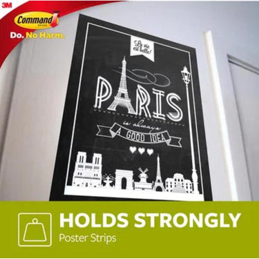Decorate your world without damaging your walls with Command poster strips. Command poster strips let you hang posters, kid’s artwork, banners and signs without the hassle of tools and nails. Command strips hold strongly on a variety of smooth, finished surfaces and these adhesive strips remove cleanly with no sticky residue or damage left behind. Now you can decorate your home, office or dorm room just the way you want with Command poster strips.
