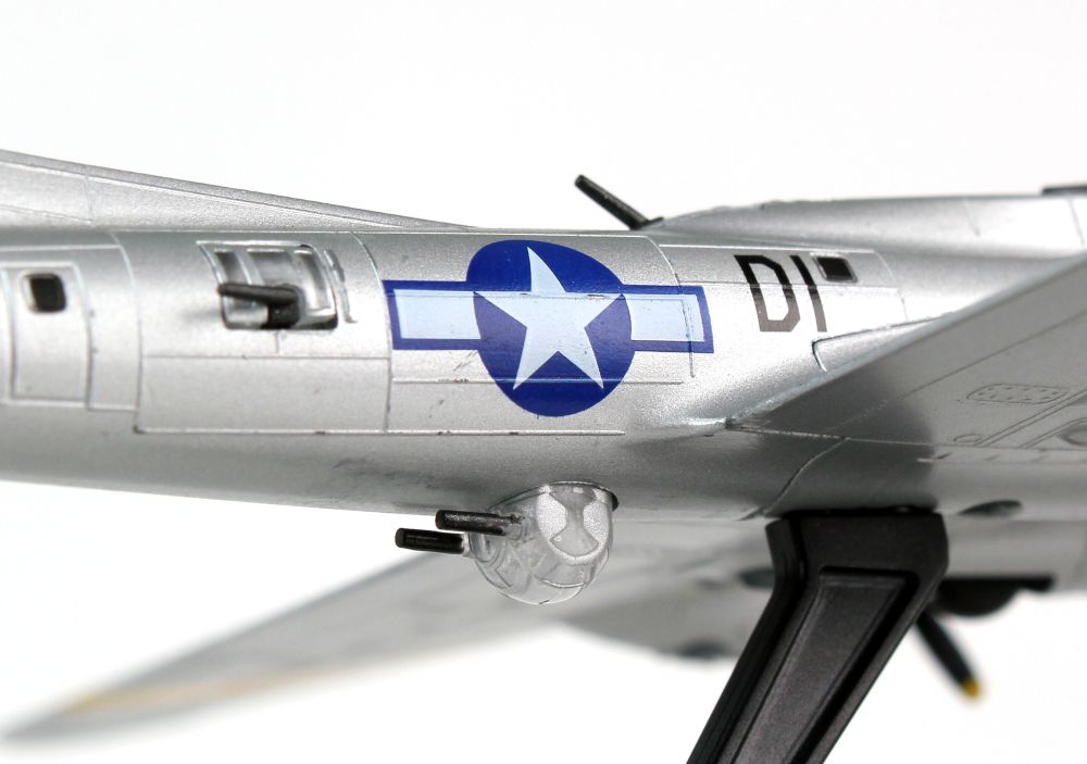 The Boeing B-17 Flying Fortress is a four engine propeller driven heavy bomber, used during World War II by the United States Army Air Forces and the Royal Air Force.  The B-17G is differentiated by its heavy duty armor and additional armaments over previous aircraft.  With an ability to take heavy damage and still return home, the stories and photos which circulated helped to add to the B-17’s iconic status. . This Die-cast metal airplane model comes in 1:155 scale with plastic stand and is approximately 5 3/4 inches long with 8 inch wingspan. Adult Collectible ages 14+