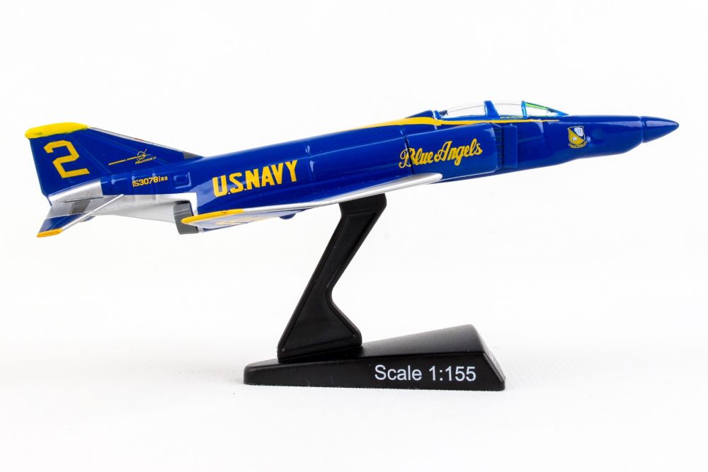 The Blue Angels® are the US Navy's Flight Demonstration Squadron whose mission is to exhibit pride and professionalism through flight demonstrations. Established in 1946, the "Blues" flew the F-4 Phantom II from 1969 to 1974. This Die-cast metal airplane model comes in 1:155 scale with plastic stand and is approximately 4 7/8 inches long with 3 3/16 inch wingspan. Adult Collectible ages 14+