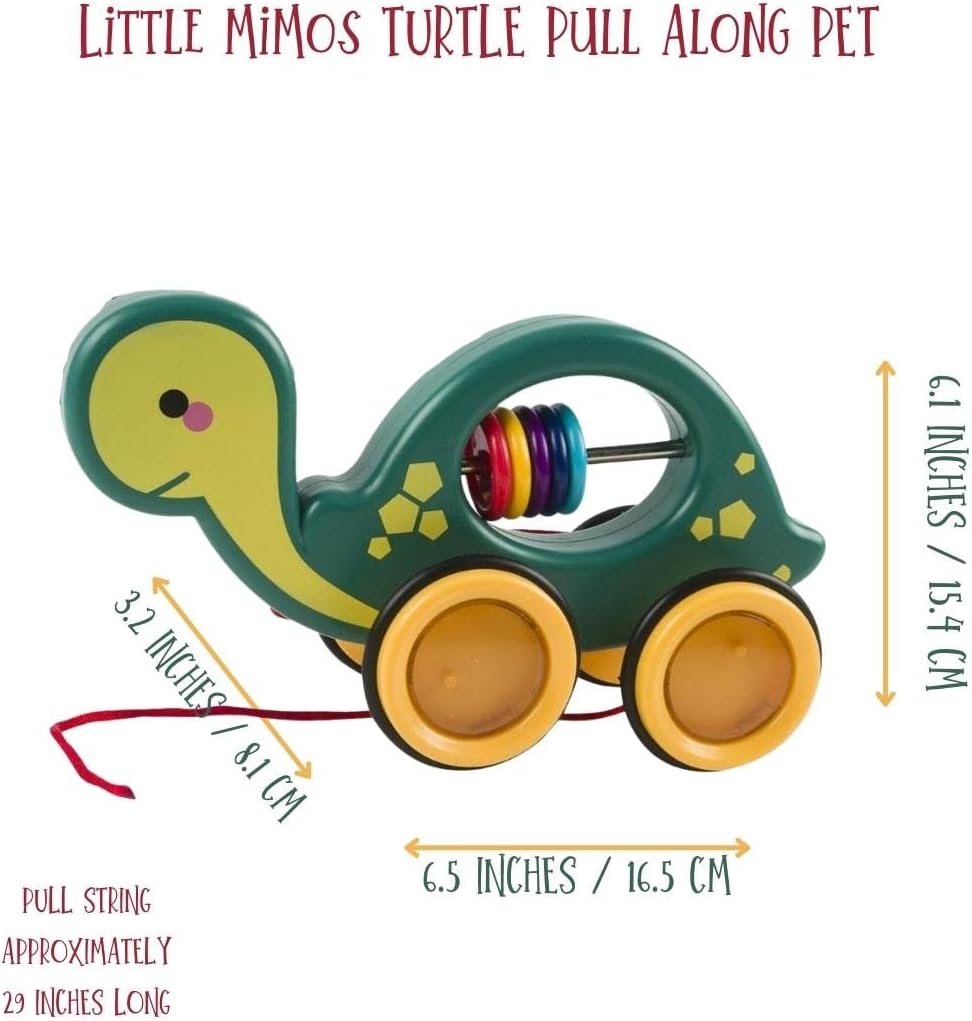 Little Mimos Pull Along Pet - Pull Along Rolling Animal Toy - Turtle