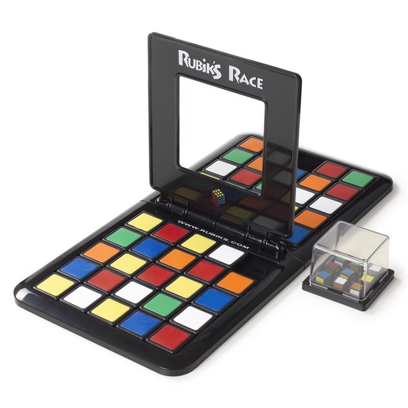 Rubik's Race is a high intensity two player board game designed to get your brain and fingers racing at an extreme pace. Shift and slide the tiles to become the first racer to match the 3x3 center of the scrambler's Cube pattern. It sounds easy enough, but the Rubik's Race is a board game of skill, speed and dexterity. Be the first to drop the divider frame on their completed side of the board. The ultimate two player face to face race. Who will be the first player to match the pattern of the nine coloured squares? If you are a fan of the original Rubik's Cube, prepare yourself for hours of racing fun with an opponent of your choice. This board game is an official Rubik's creation so shift and slide until you have solved the formidable Rubik's.