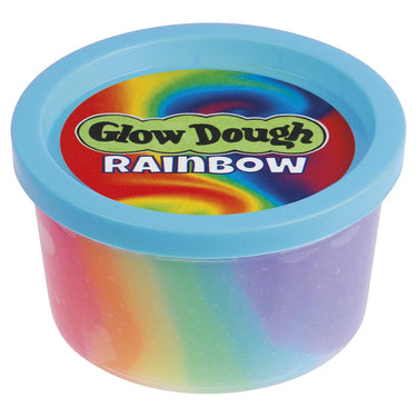With different colors in each container, and the ability to glow in the dark, Toysmith Rainbow Glow Dough is a bestseller. A reusable plastic container holds 4 ounces of multicolored putty. Comes in 3 different rainbow-style color combinations. Pick the classic rainbow option with hot pink, orange, yellow, green, blue, and purple; the cooler mix with green, blue, and purple; or the warm color mix with hot pink, light pink, light yellow, and dark and light orange. A blue display box holds an assortment of 36 Rainbow Glow Dough containers.