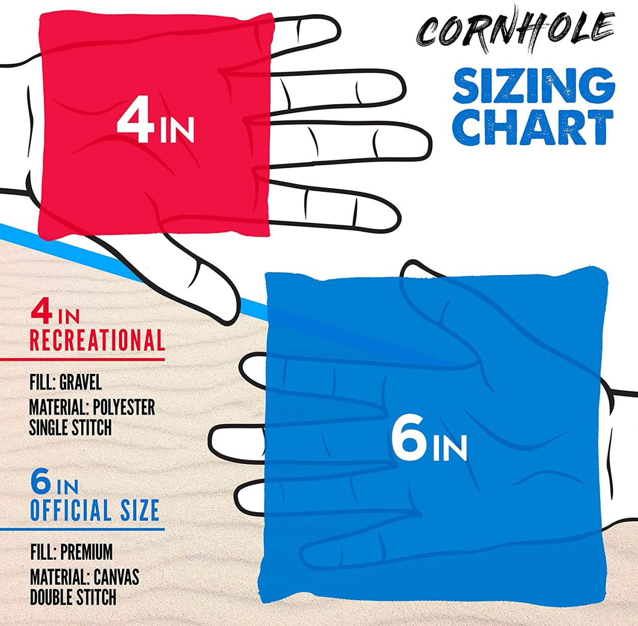 - Fun un size 4inch X 4inch cornhole bags are smaller than traditional sized bags and perfect for recreation, kids or youth