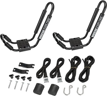 The REESE Explore J-Rac kayak carrier attaches to most cross bars and secures the kayak in an upright position. The carrier includes two J-Rac holders and securing straps and mounting hardware are included. It has a capacity of 165 lbs. REESE is the market leader in automotive and recreational product solutions, engineered and designed to meet the demands for work and active lifestyles. REESE Explore offers durable cargo management solutions to get you where you're going. Our goal is to increase your vehicles storage capacity by allowing you to carry cargo outside your vehicle, on the roof, using the hitch or mounted to a trunk.