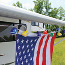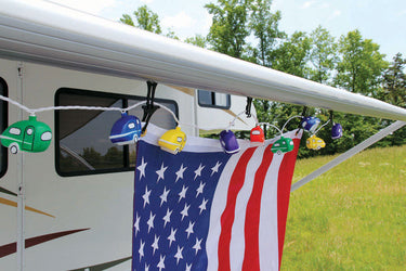 With Camco's Awning Hanger Clips you can hang lights and flags at the same time. Camco's awning hanger clips slide directly into your awning roller bar and snap together to give you multiple levels of hangers. Comes in a pack of 8. Patented.