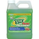 TST Concentrated RV Toilet Treatment breaks down waste and tissue to stop odors up to 7 days. 4 ounces treats a 40 gallon holding tank. Lubricates and cleans sensors. No harmful formaldehyde.