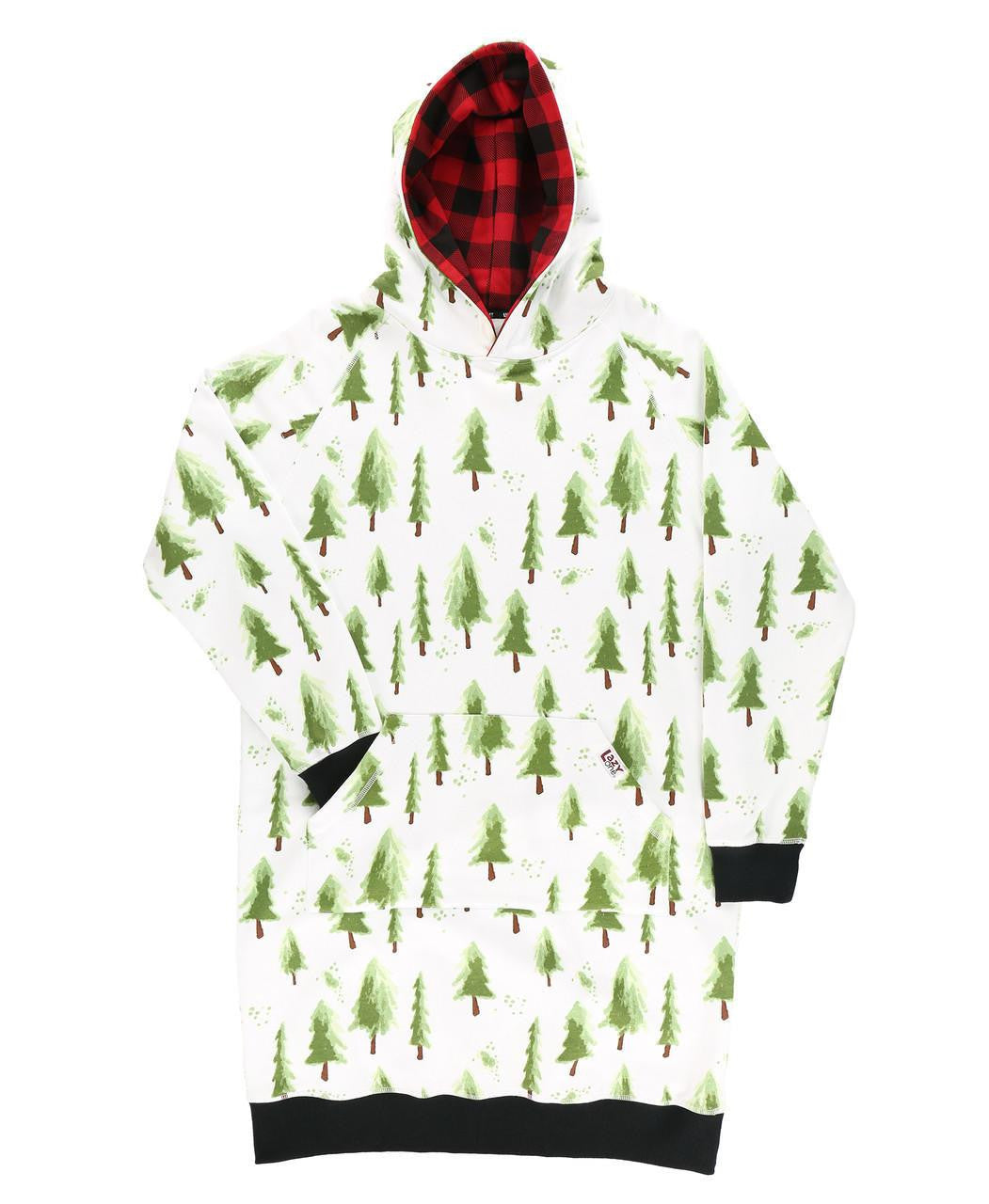 Our Evergreen Plaid Sleep Hoodie will put you on cloud 9 with all the comfort it brings. Featuring our paint brush evergreen forest design. Our Sleep Hoodies are longer than your average hoodie, making them perfect for snuggling on the couch on a cold day. They also feature thumb holes and who doesn't love those!! Made with 80% cotton and 20% polyester giving you the right amount of comfort and warmth.