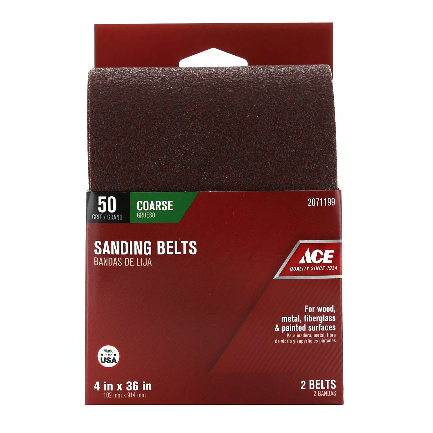Ace 36 in. L X 4 in. W Aluminum Oxide Sanding Belt 50 Grit Coarse 2 pc