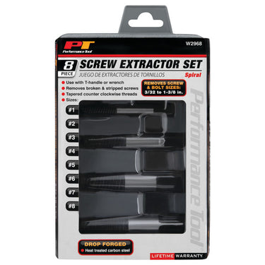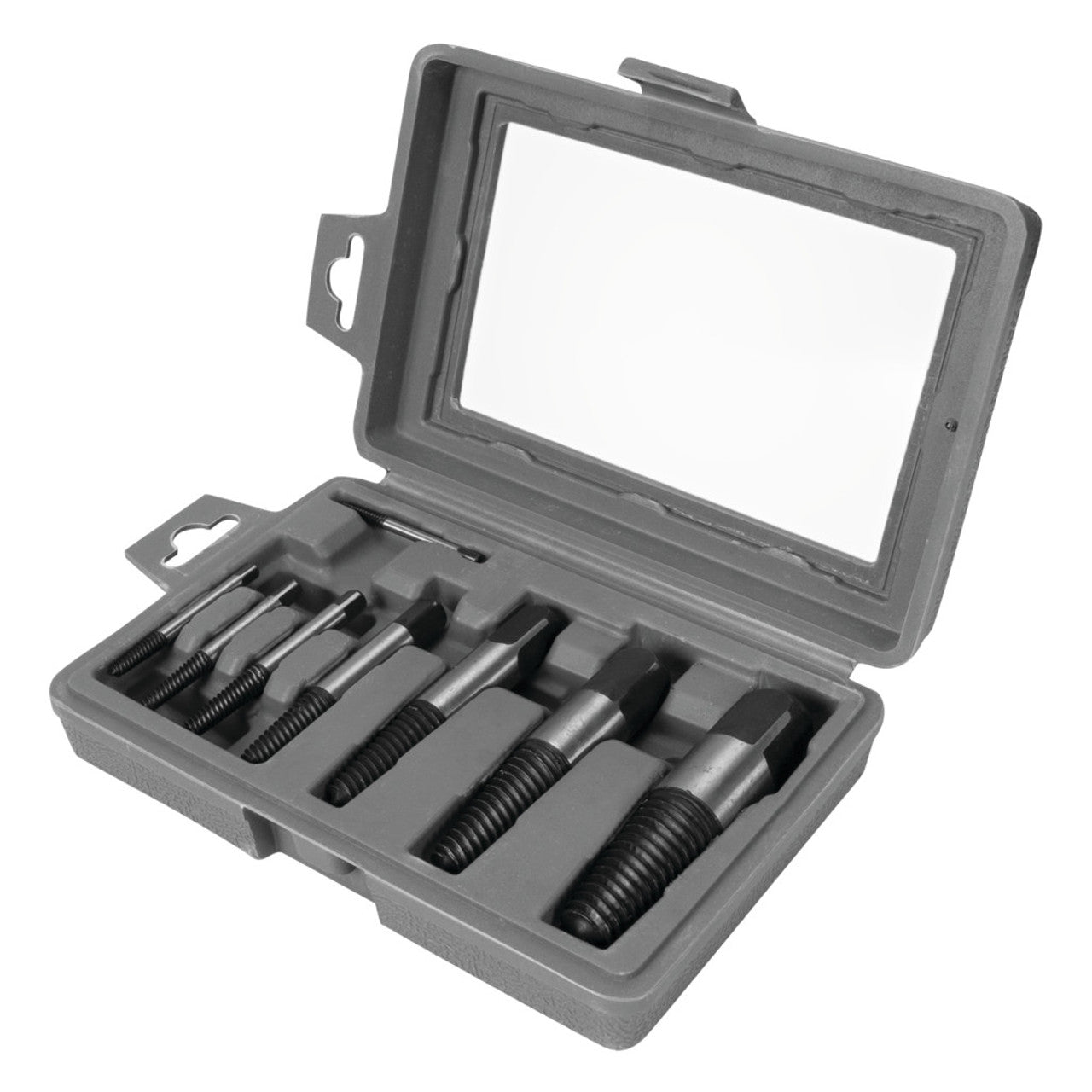 Remove broken and stripped screws with this set of carbon steel extractors. Includes eight sizes and carrying case.