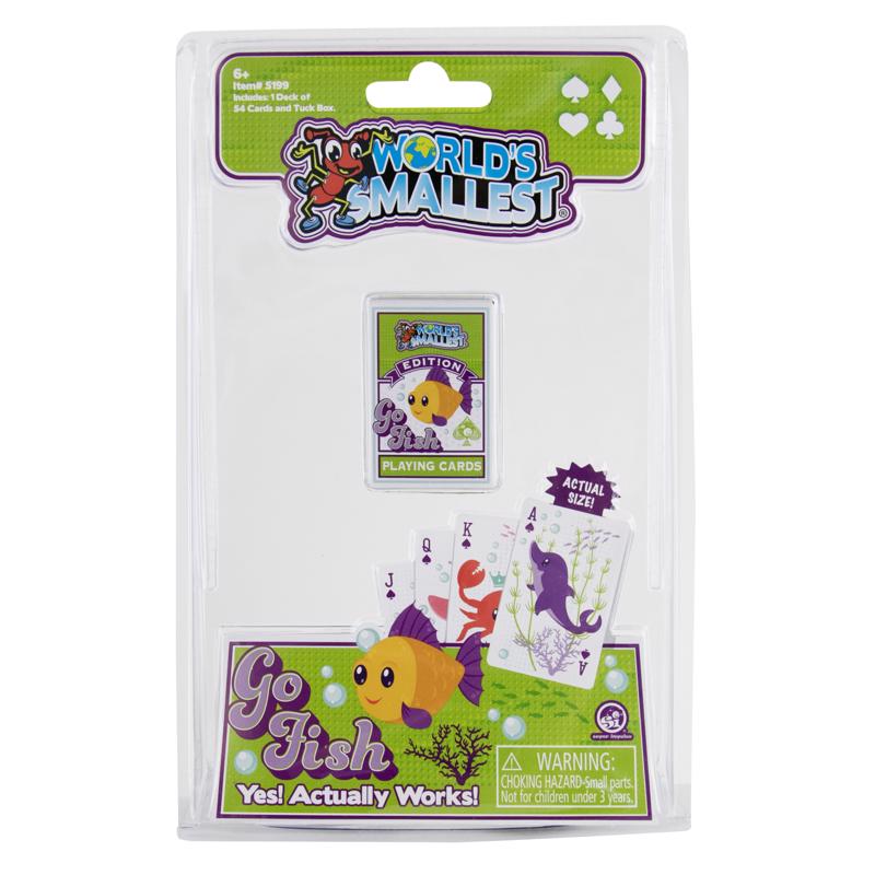Introducing the Worlds Smallest Classic Kids Cards Assortment. This assortment includes three beloved card games, all scaled down to fit in the palm of your hand. Challenge your friends and family to a game of Crazy 8, test your memory with Go Fish, or avoid the dreaded Old Maid in this timeless trio of fun filled favorites.