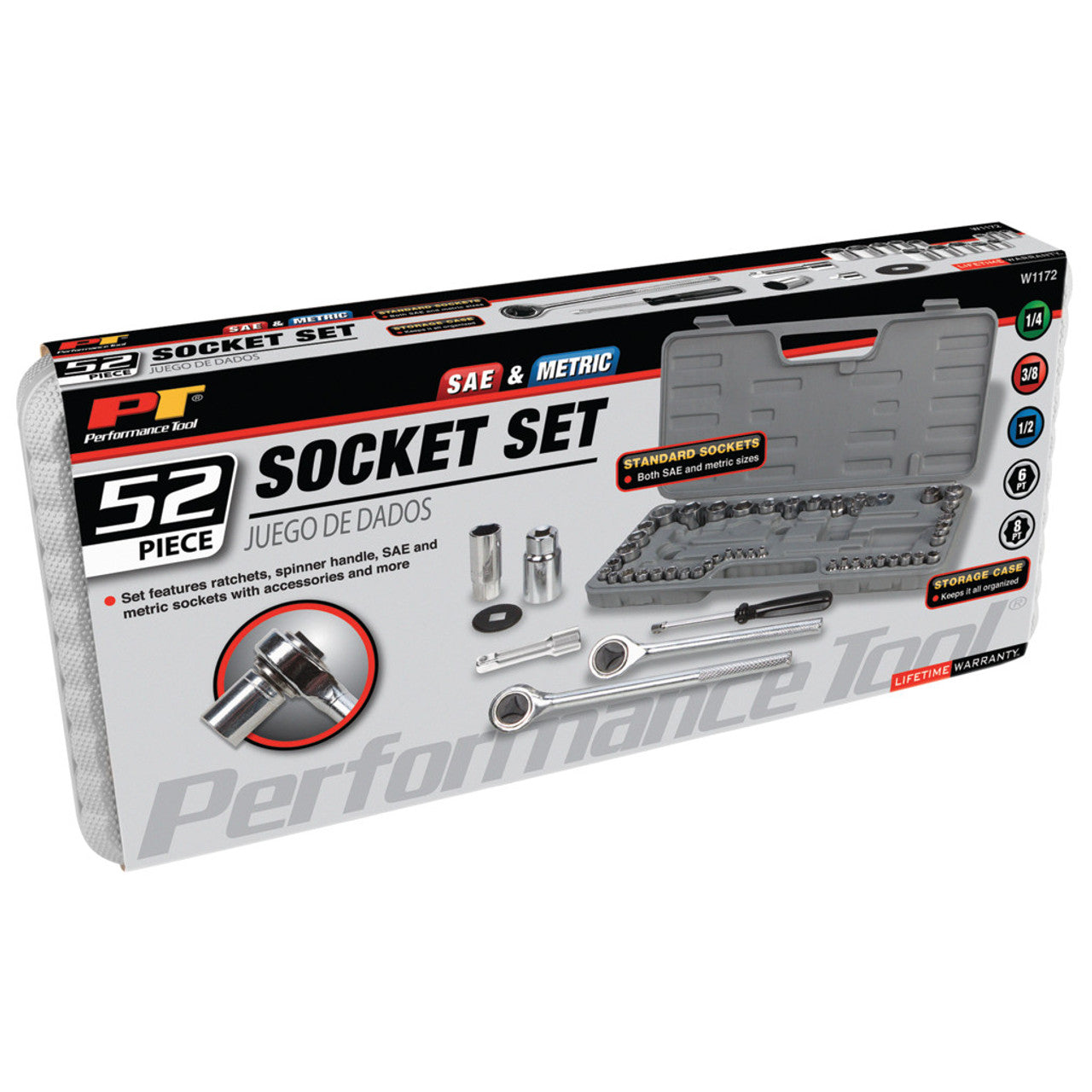 Performance Tool 52 pc. 1/4" 3/8" 1/2" Socket Set