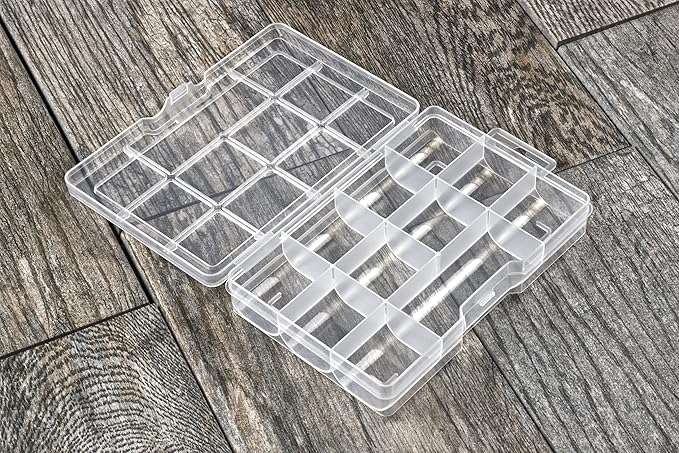 This quality storage container will help keep you organized when storing your smallest items—nails, screws, bolts, jewelry, beads, stones, pins, buttons, bait, and so much more—equipped with a channel design lid and a snap-lock closure to keep its contents from mixing and spilling. A hanging tab is also included to provide you with more convenient storage options.