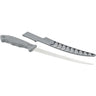 The South Bend 6 Fillet Knife is ideal for fish ranging is size from panfish to large freshwater and saltwater game fish. Its a long narrow shape narrow tip and the curved sharp edge allows you to make delicate and precision cuts. This fishing fillet knife comes with a sheath made of the same material as the knife s handle.
