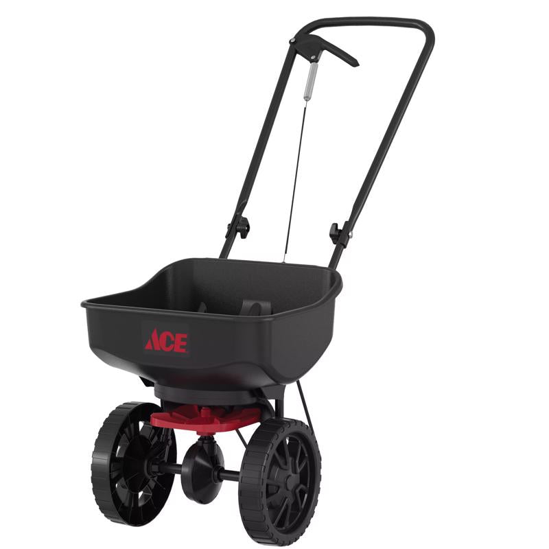 - Use the Ace Small Spreader to apply grass seed, fertilizer, salt, and ice melt