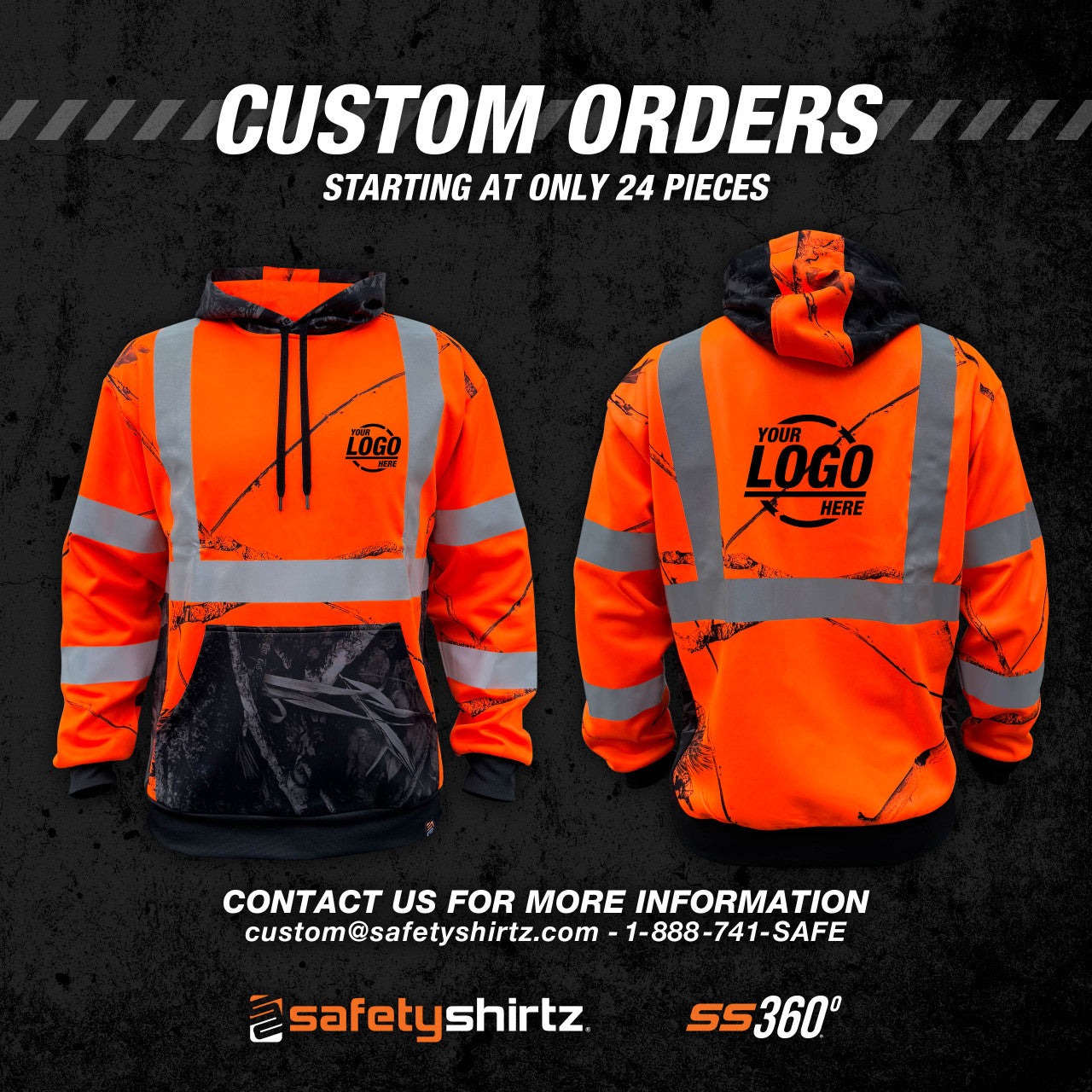 A fresh take on our class rated camo, Daybreak Camo collection of tees and hoodies. With more hi-vis and a much brighter neon orange build. No matter the job, we've got you covered in our line of SS360 ANSI rated safety gear. With our American Grit SafetyShirtz hoodie you can stand out on the job site wile showing your patriotism and love for your country in hi-vis! Class 3 rated and built to keep you warm and comfortable in the coldest of weather, our SS360 hoodies also come with a large comfortable hood and a soft combed fleece inner shell. Also now available in Class 2 tees and Class 3 Long Sleeve tees as well. Elevate Your Workwear!