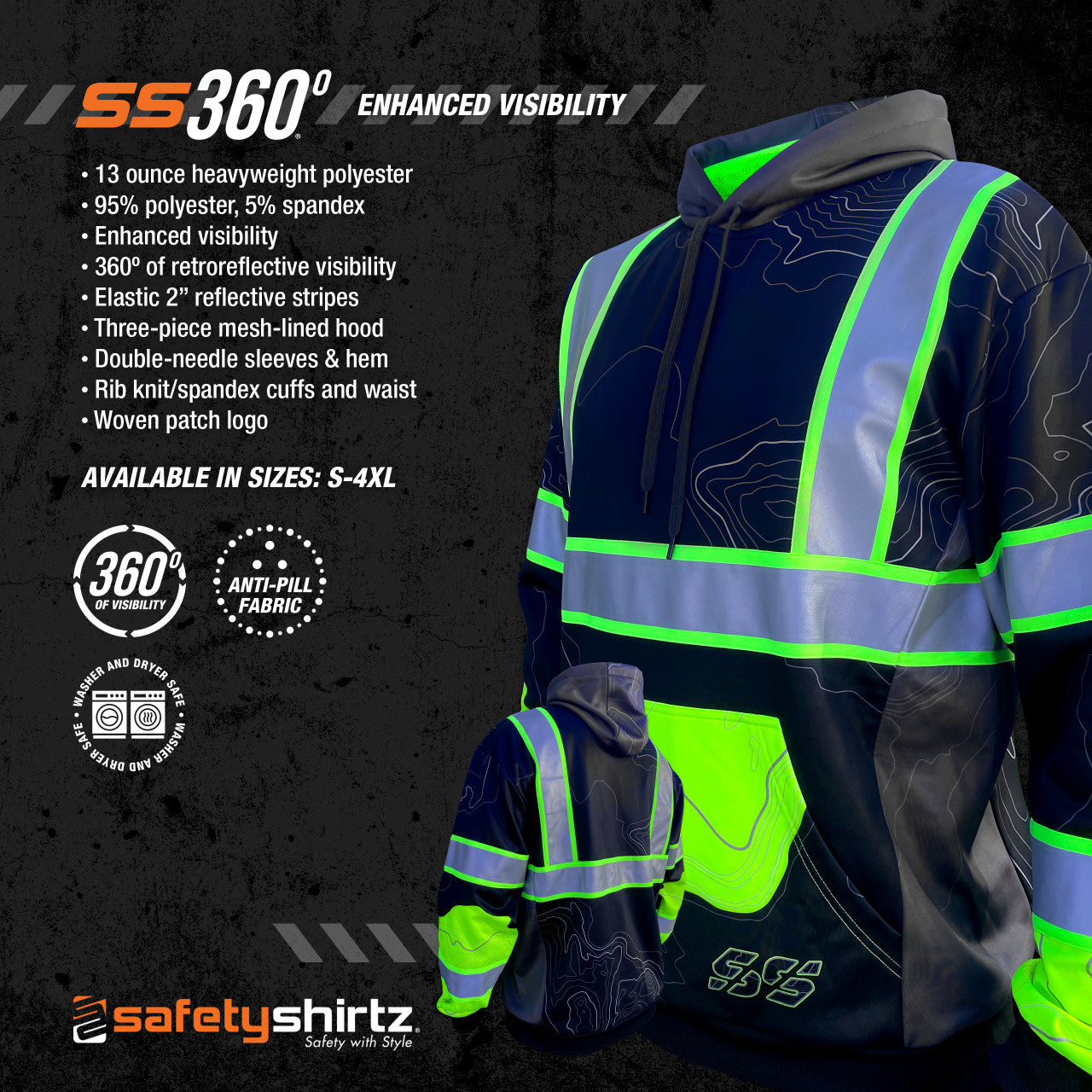 SS360º Stealth Topo Type-O Enhanced Visibility Reflective Safety Hoodie (Black) Size XL