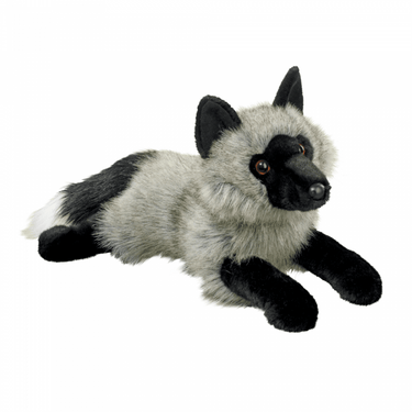 Sleek and handsome, Sterling the DLux plush Silver Fox will catch your eye with his unusual coat color! Silver Foxes are dark color morphs of the more commonly known Red Fox. Sterling features the typical black leg stockings of his species but instead of having a russet colored coat, it’s silvery gray and the faux fur hairs feature lifelike black tips. He features a floppy body style that we’ve gently weighted with beans in each of his paws. A pair of triangular, black ears lend alertness to Sterling’s amber-eyed expression, while a flashy, white tail tip completes his realistic appearance. A must for Fox lovers of all ages, let yourself be captivated by the allure of this unusual Silver Fox stuffed animal!