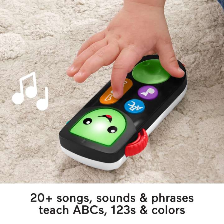Baby can tune-in to fresh educational fun with the Laugh & Learn® Stream & Learn Remote™ activity toy from Fisher-Price®. This pretend remote control looks just like the grown-up version but it's sized just right for small hands to grasp, press, click and toggle. When your baby presses the ABC, 123 or music buttons, they'll hear 20+ songs, sounds, and phrases about the alphabet, counting, and colors as the friendly faced screen lights up. Additional busy activities like a toggle switch, spinner and directional button help strengthen baby's fine motor skills (Plus, they're fun)!