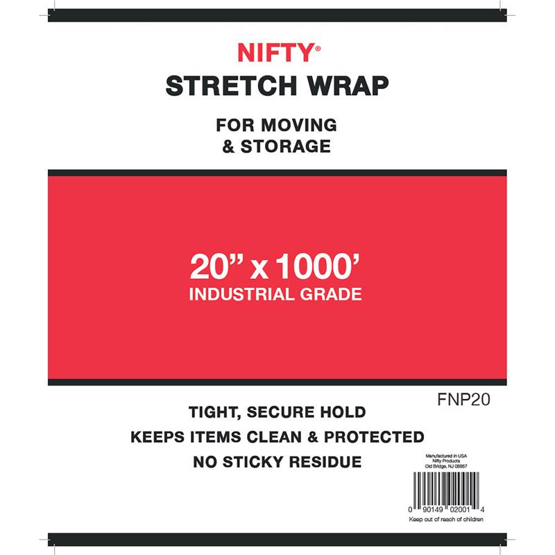 Nifty Brand 20 in. x 1000 ft. stretch film product with dual extended core handles for palletizing and complete product wrapping