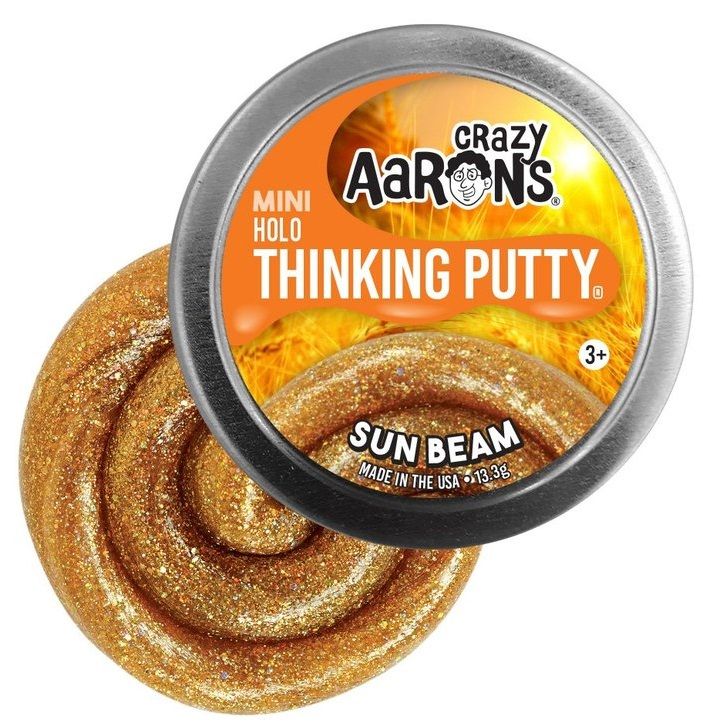 A moment in the sun. Gold with rainbow holographic glitter, Sun Beam Thinking Putty is warm and reflective.